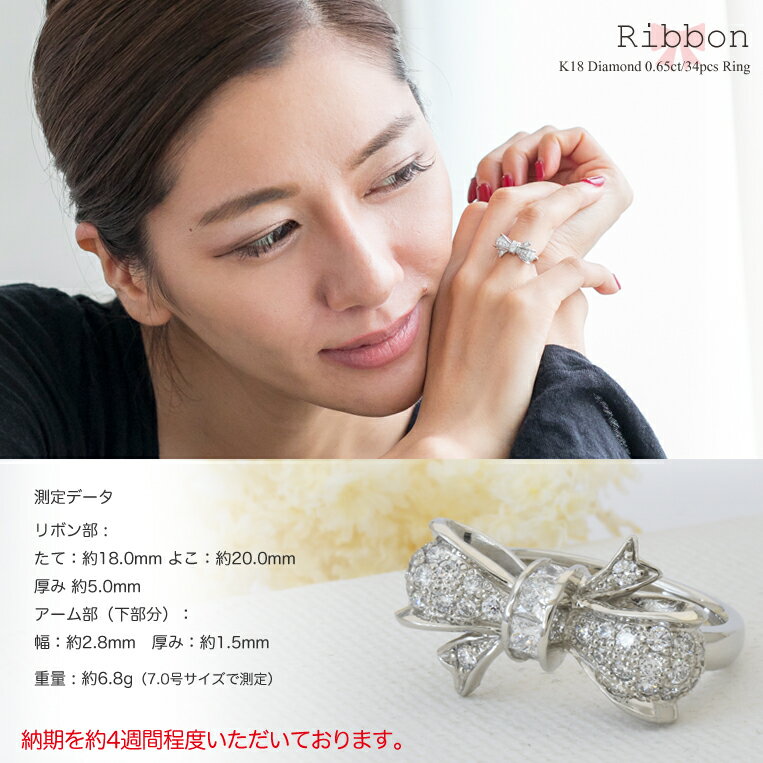 ◆サイズ 5.0号〜17.0号 ◆大きさ リボン部: たて 約18.0mm よこ:約20.0mm 厚み 約5.0mmアーム下部: 幅 約2.8mm 厚み 約1.5mm ◆重量 約6.8g (7号サイズでの測定です。