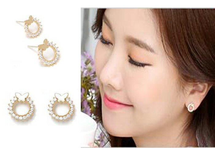 ジルコニアのリング!16KPの蝶々が止まっているピアス、ドレツアップして、パーティ用としても使える存在感バッチリのアイテム。