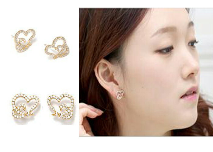 ハートに、ジルコニアが、輝く逸品のピアス、ドレツアップして、パーティ用としても使える存在感バッチリのアイテム。